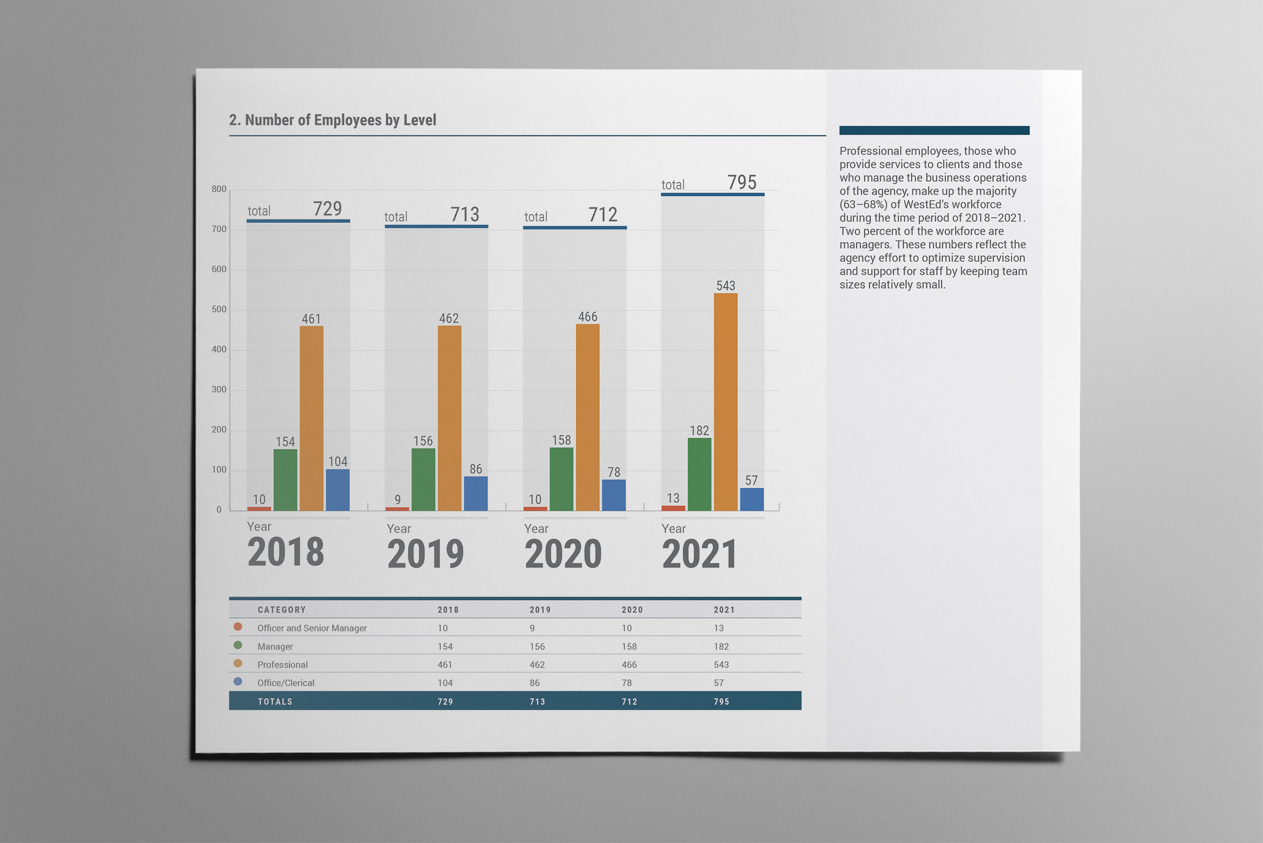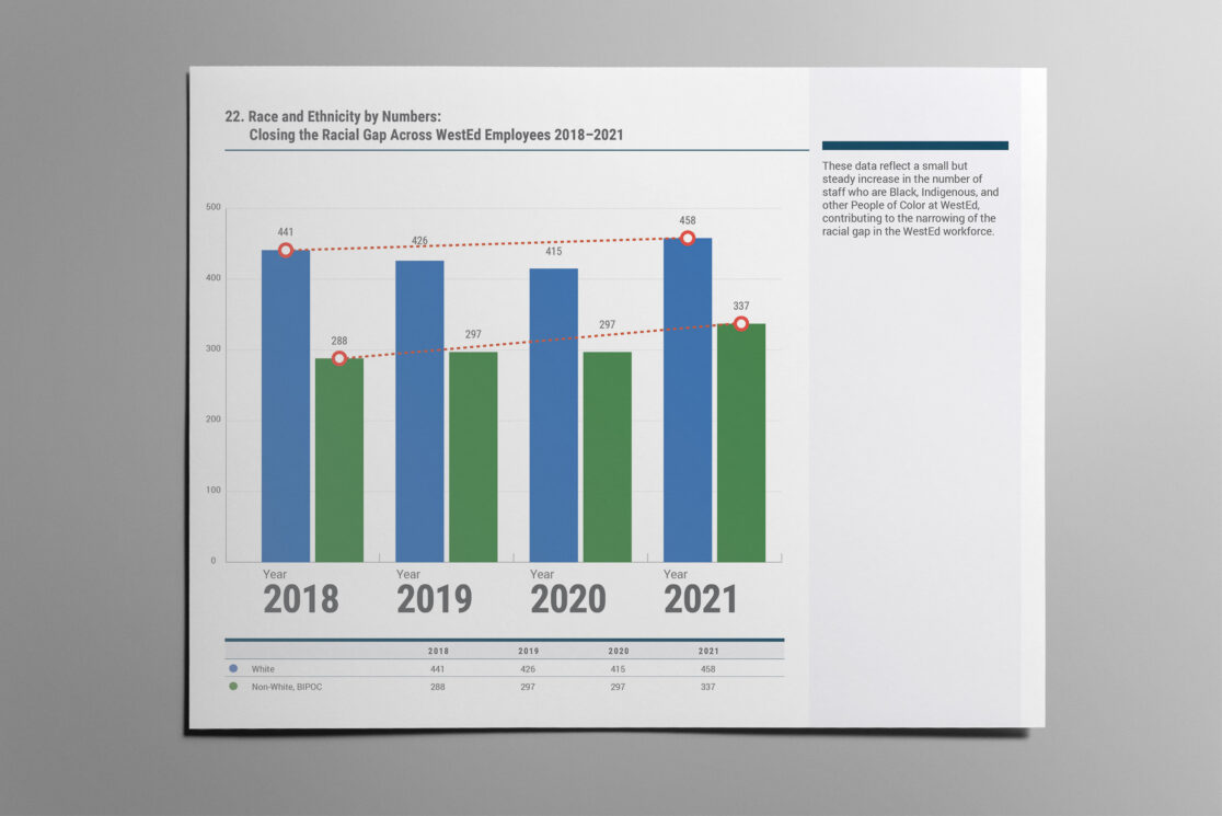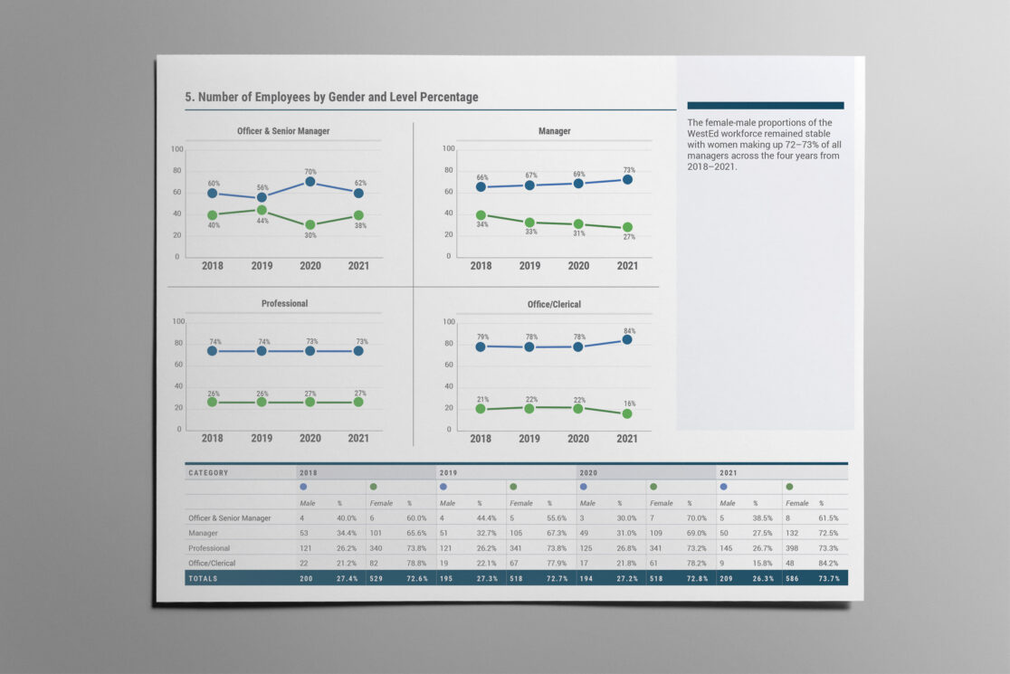 WestEd collected data to help support Diversity, Equity, and Inclusion initiatives to help inform their progress and where they needed to focus more resources. Additionally, this data could be a tool to promote transparency of the DEI team initiatives and communicate progress to the rest of the company.